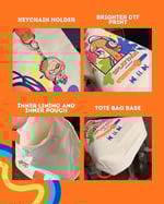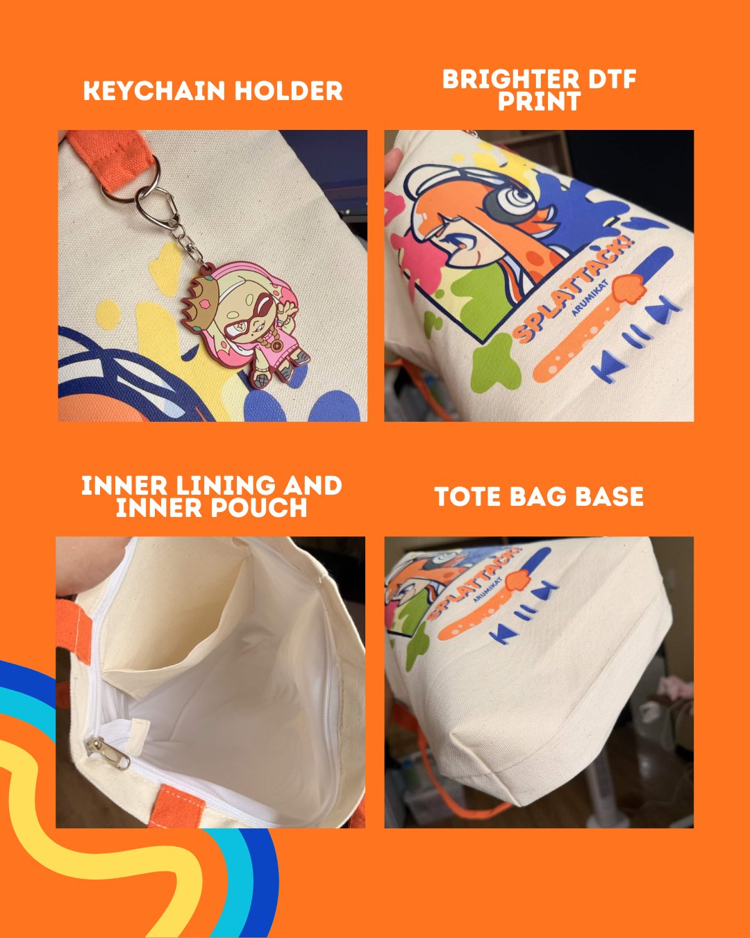 NEW AND IMPROVED 14x12 inches tote bag with 3inch base. Direct print to fabric, Includes zipper, keychain holder, colored handle, inner lining, and inner pocket DOES NOT INCLUDE ANY KEYCHAIN.